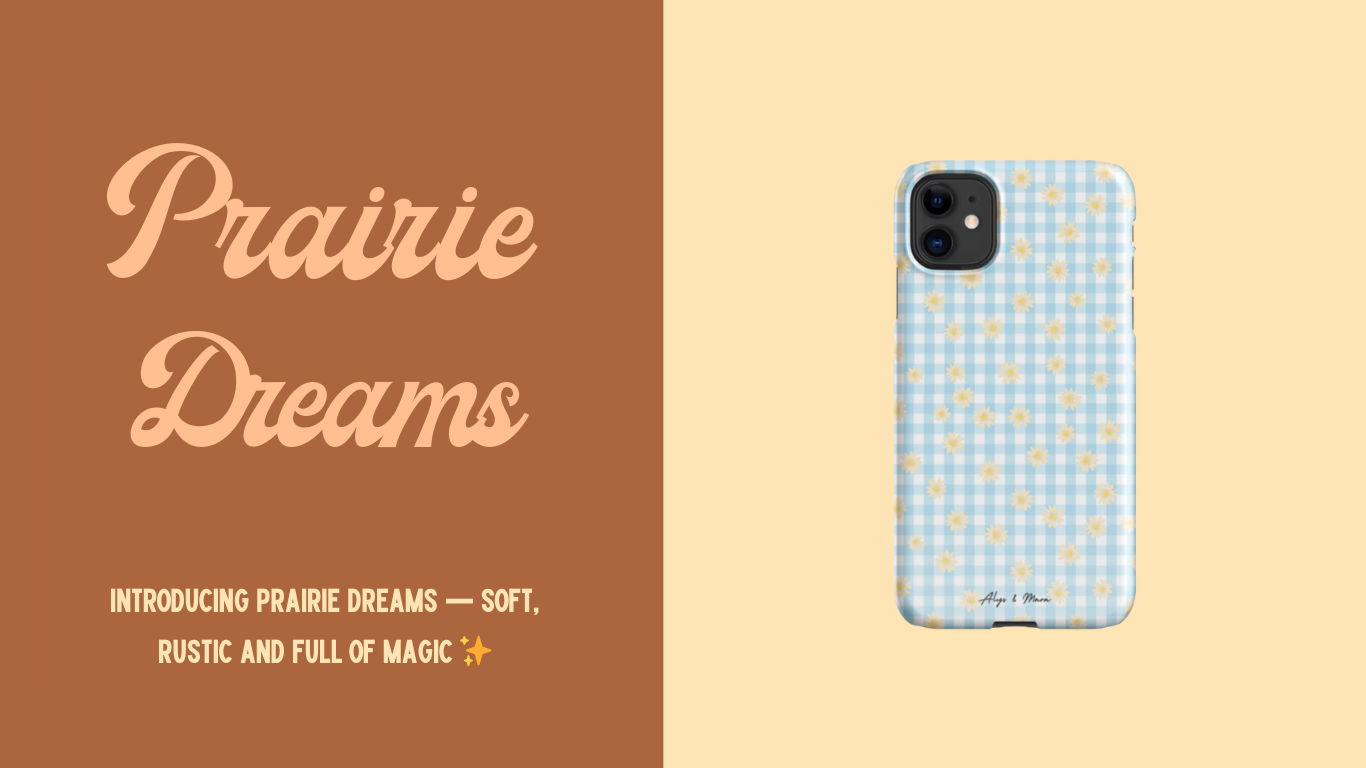 Welcome to Prairie Dreams, where meadow blooms, gentle pastels and cozy countryside moments meet. This collection blends earthy charm with playful, cottage-core accents — perfect for anyone who loves a dreamy, down-to-earth aesthetic.